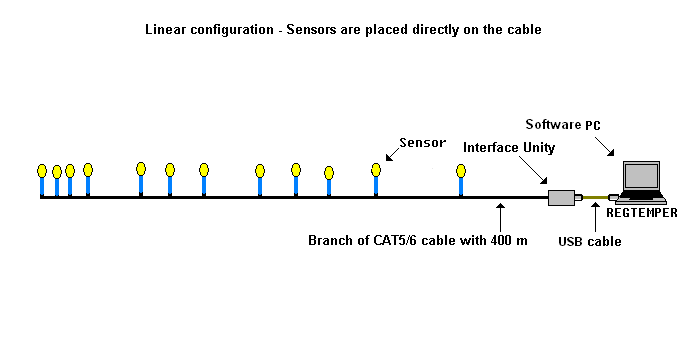 - Sensors are placed in parallel in the cable at a preferred sapacings .