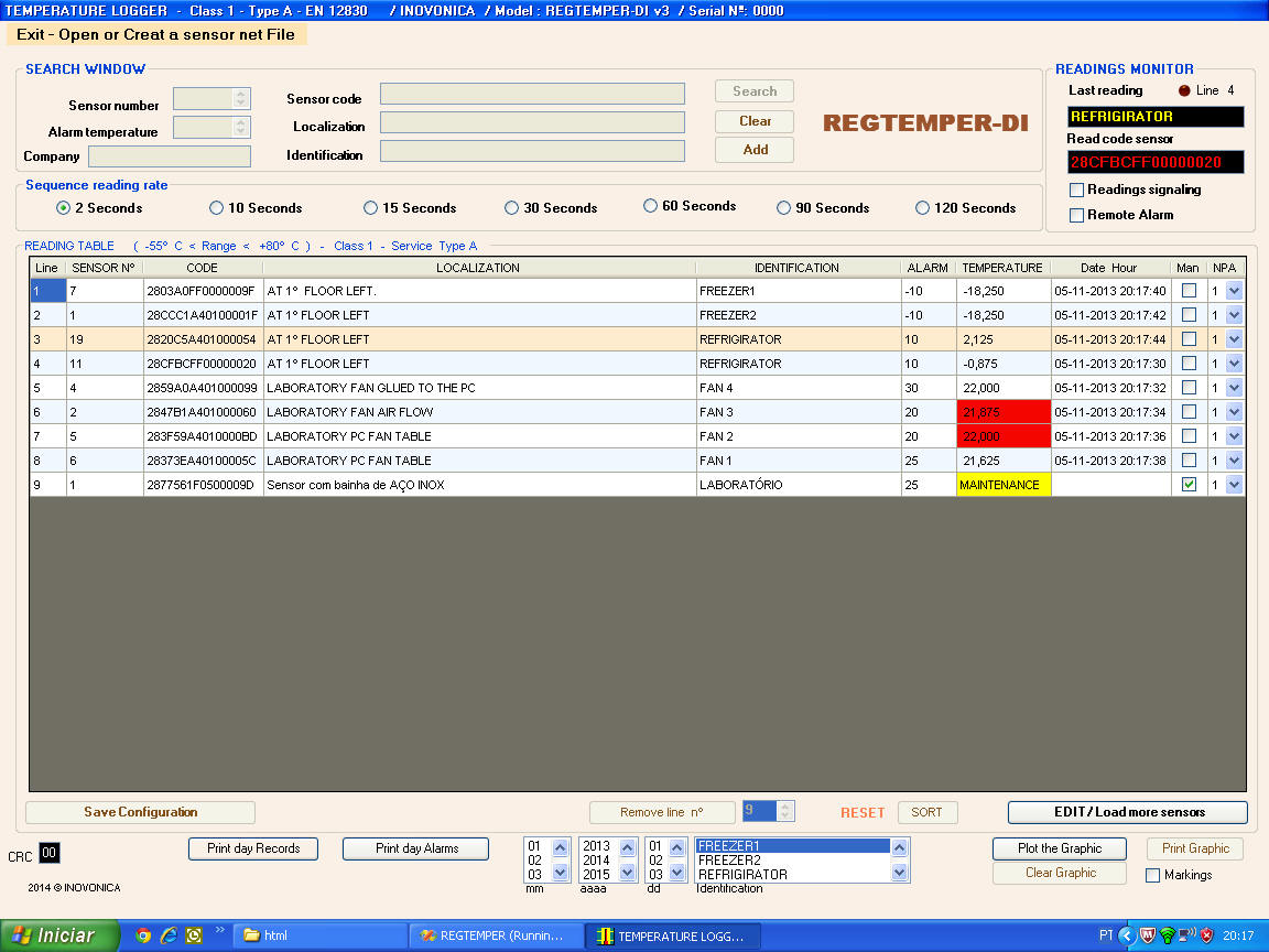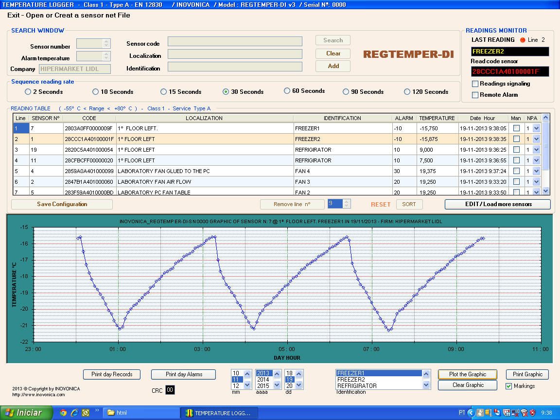 - Ice Cream business: for registration monitoring and alarm of temperatures of refrigeration equipment. Meets the EN12830.(*)